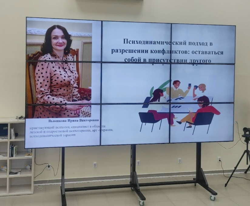 Вторая часть мероприятия была посвящена практической психологии. Благодаря увлекательному мастер-классу, проведенному Вьюшковой Ириной Викторовной, участники смогли познакомиться с психодинамическим подходом в разрешении конфликтов. Каждый присутствующий получил возможность совершить путешествие к собственному «Я», обнаружить внутренние ресурсы, способствующие личностному росту. Ключевой темой мастер-класса стало осмысление того, как важно оставаться собой в присутствии других, сохраняя свою уникальность и цельность.